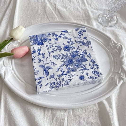 منديل ورقي مزين بالزهور الزرقاء