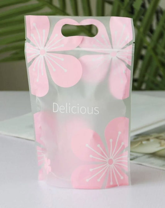 حقيبة بلاستيكية - مخططة باللون الوردي