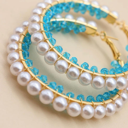 قرط دائري من الخرز واللؤلؤ