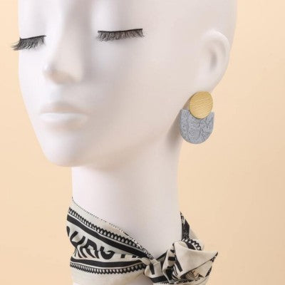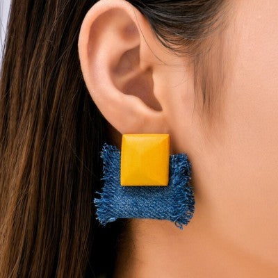 قماش جينز وأقراط خشبية صفراء
