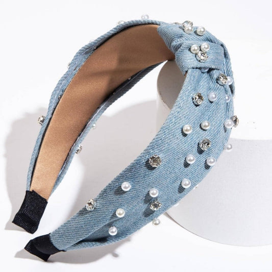بعيدا عن المكانعصابة رأس مرصعة بأحجار الراين باللون الأزرق الفاتح