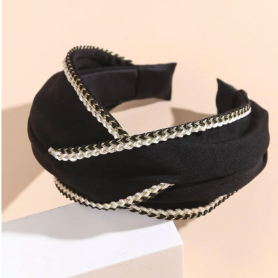 عصابة رأس مضفرة باللونين الأبيض والأسود
