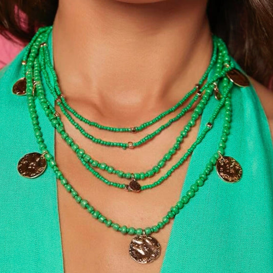 قلادة متعددة الطبقات باللون الأزرق الفاتح
